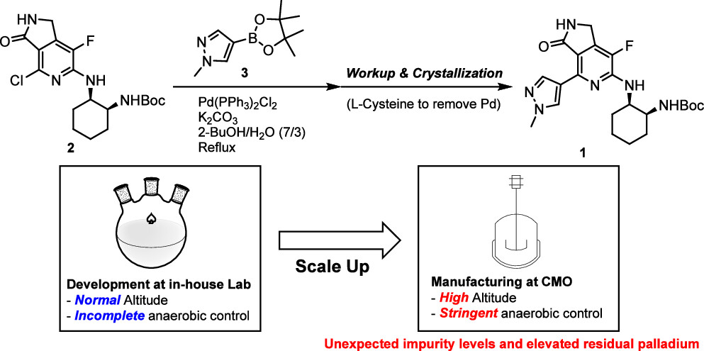 The Suzuki-Miyaura coupling reaction is widely utilized in API manufacturing. Although most companies have developed proprietary know-how for scaling up this important reaction, failures can still occur due to the intrinsic complexities associated with palladium-catalyzed processes, such as sensitivity to air, temperature, mixing, and others, as well as the significant challenges of removing residual palladium from the final product.